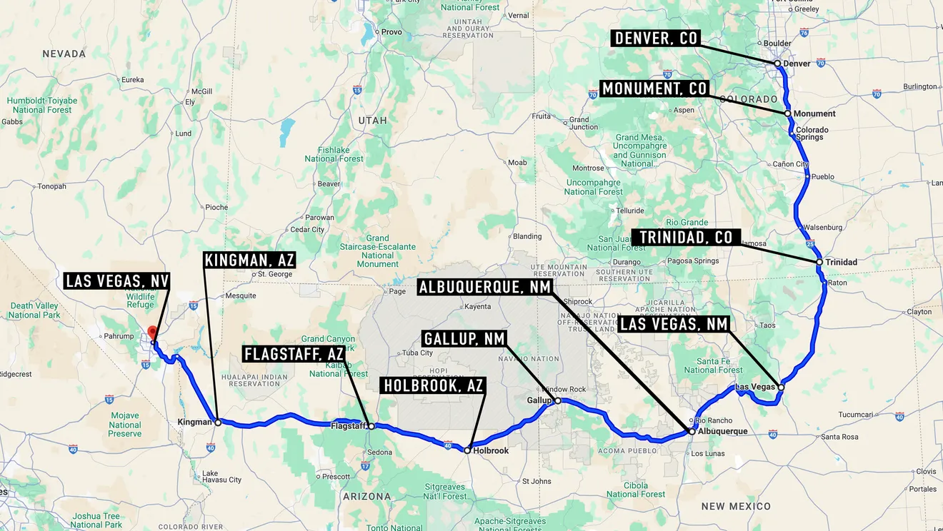 - Investigators say his route took him through the Arizona municipalities of Holbrook, Flagstaff, and Kingman through stops at charging stations.