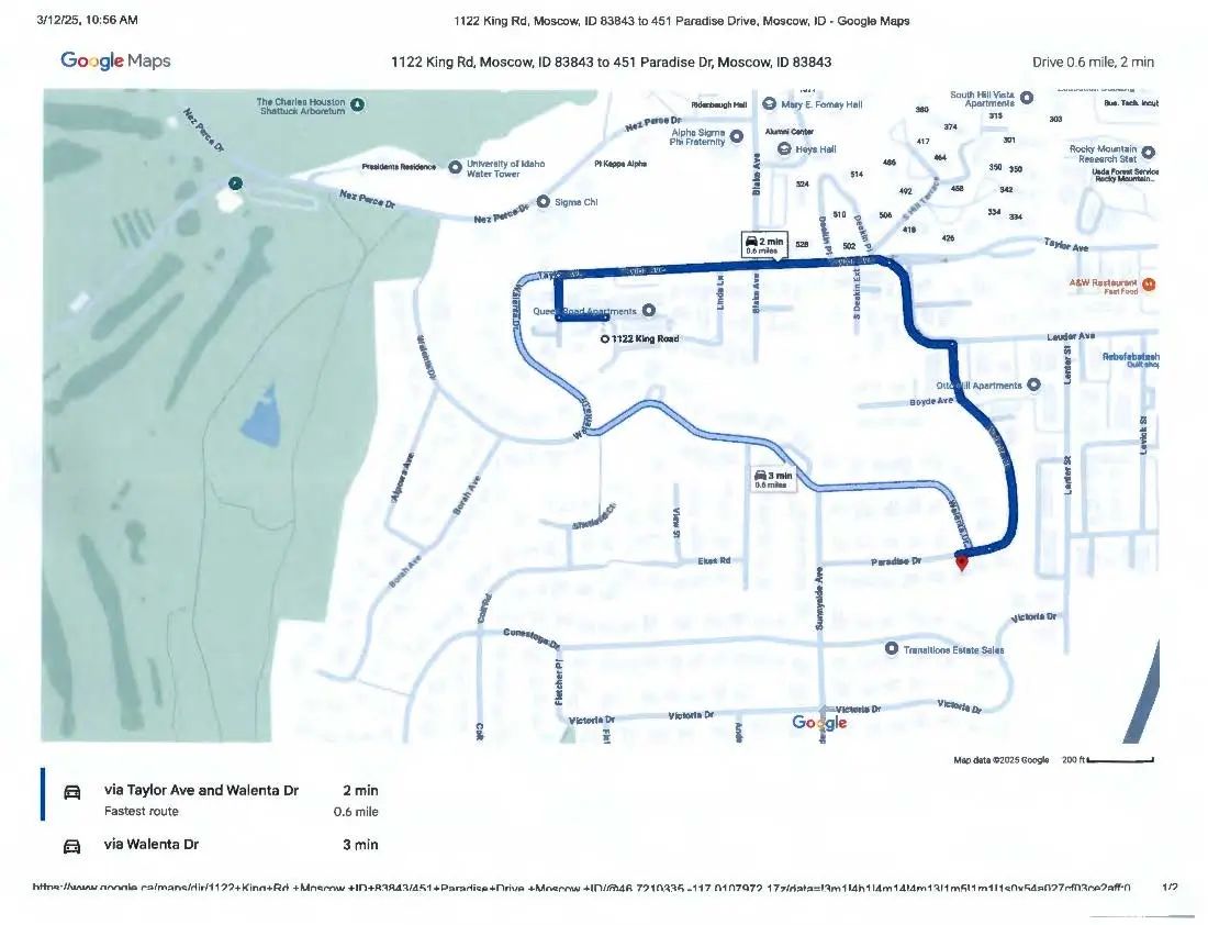 - Location: 1122 King Road, Moscow, Idaho (near University of Idaho campus)