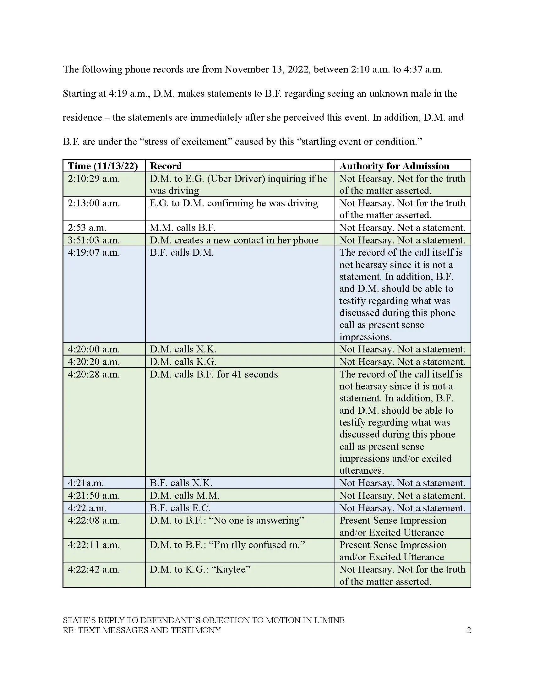 - 4:22:08 – 4:24:27 AM – Text Messages Between D.M. and B.F.