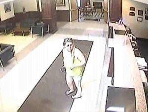 - Surveillance photo of Megan Waterman in Holiday Inn front lobby