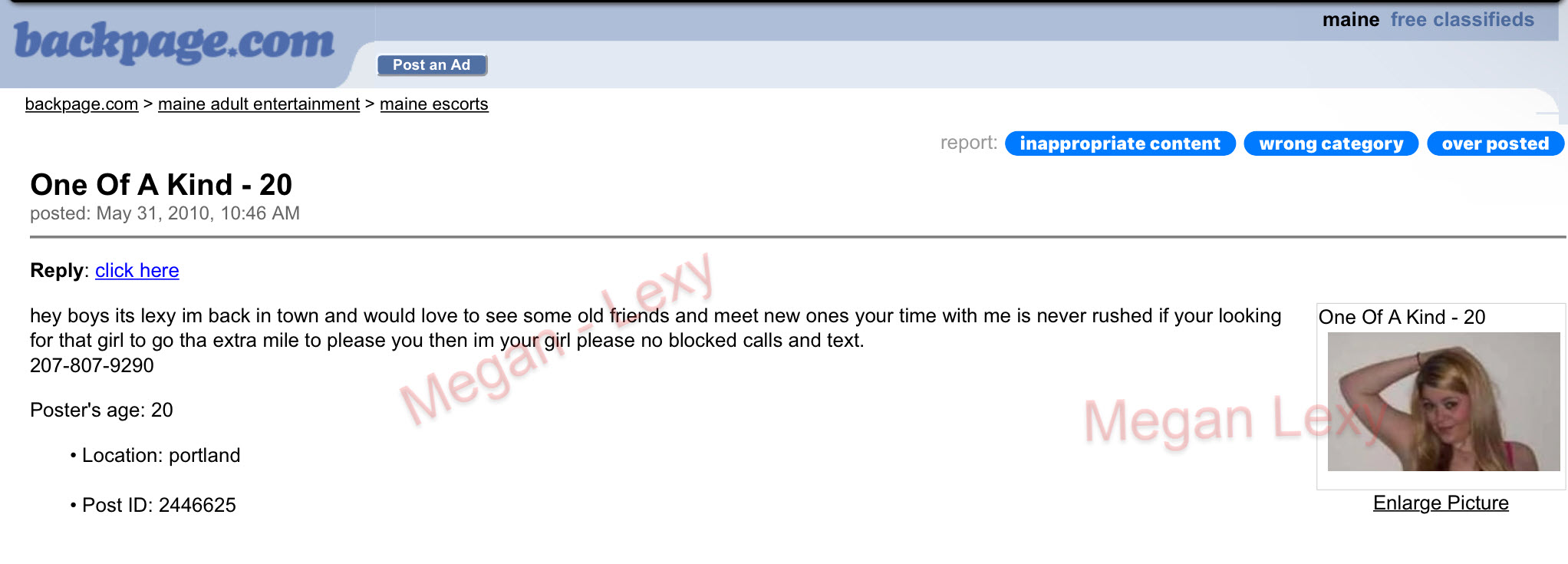 - Megan Waterman Escort Ad