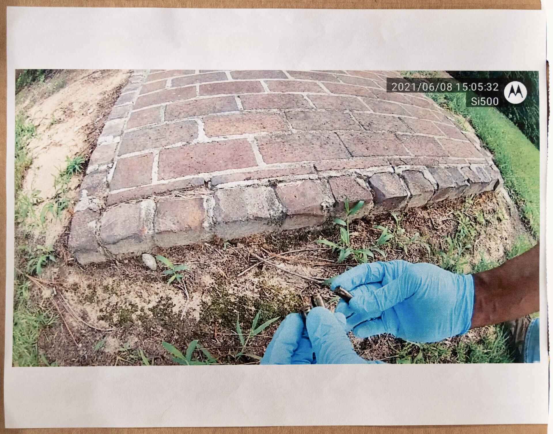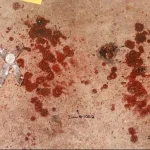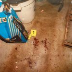 - Wadding to a shot gun shell was observed behind the decedent’s feet, inside the shed. A rear window to the shed had several holes in the glass. Large amounts of blood spatter and brain/skull matter were on the door to the shed and on items within the storage building. Detectives observed a pool of blood all around his head, and he had a large opening where the top of his head was, exposing the entire inner cranial cavity, his brain was next to his body near his legs on the left side.