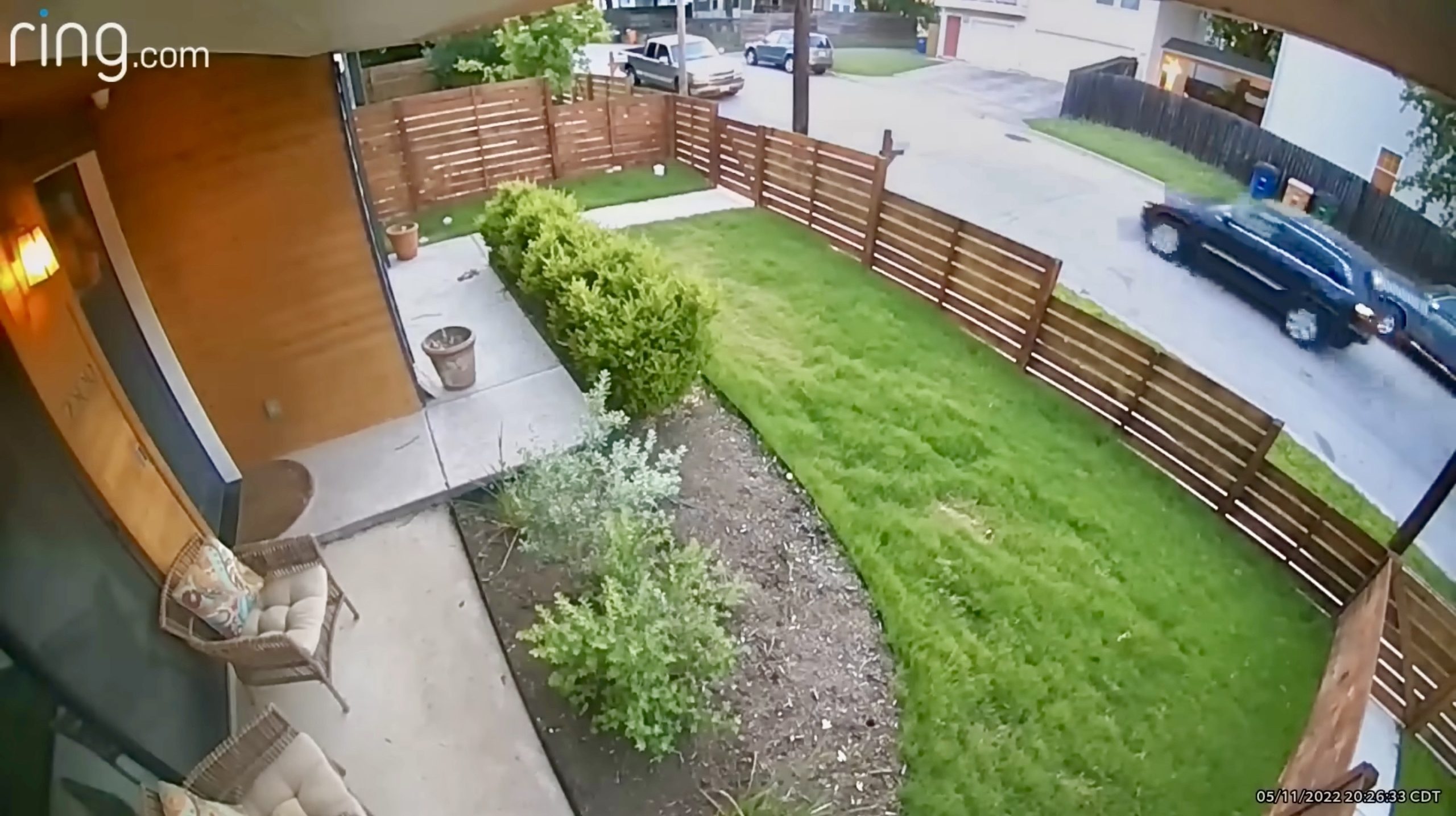 - 8:37 PM – Armstrong’s black SUV is seen approaching and slowing down near the Maple Ave residence.