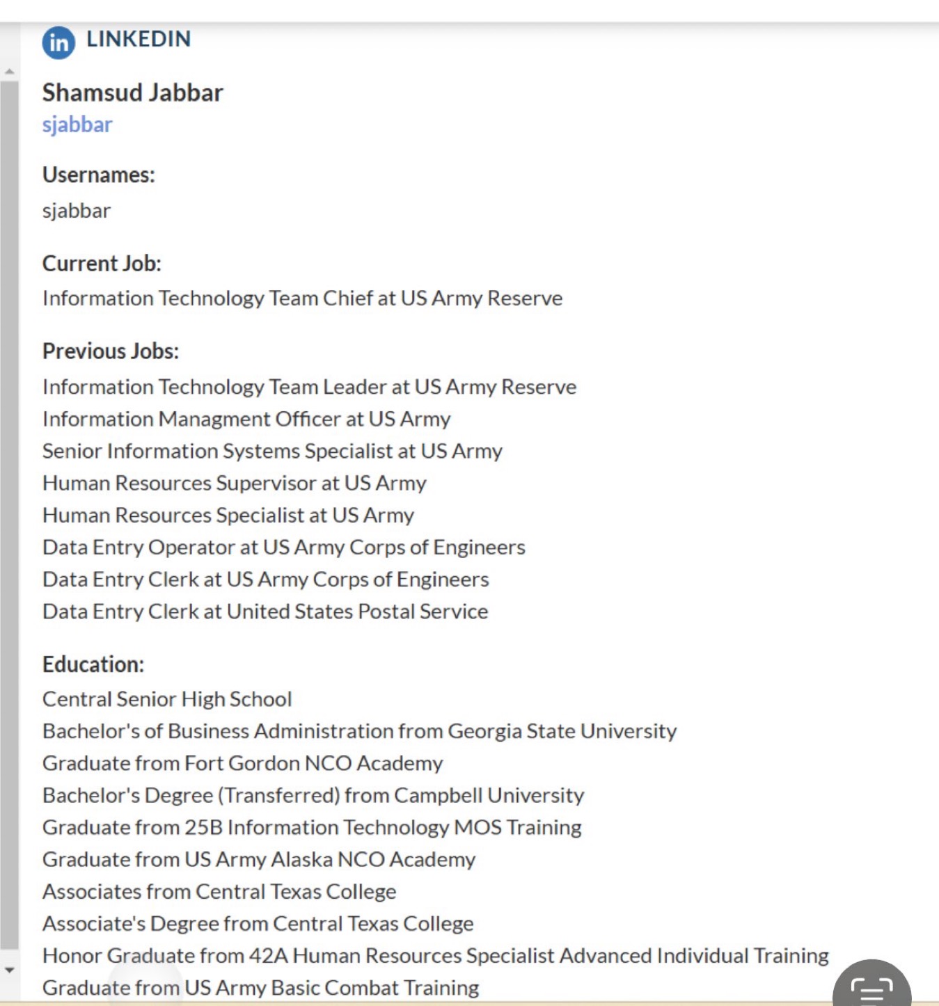 • Works in professional roles, including real estate. Also expresses interest in cryptocurrency and firearms. On a now-deleted account on X.com Jabbar shared posts in 2021 about his real estate work and his interest in cryptocurrency.
