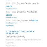 • 2015-2017: Attends Georgia State University, earning a bachelor’s degree in computer information systems.