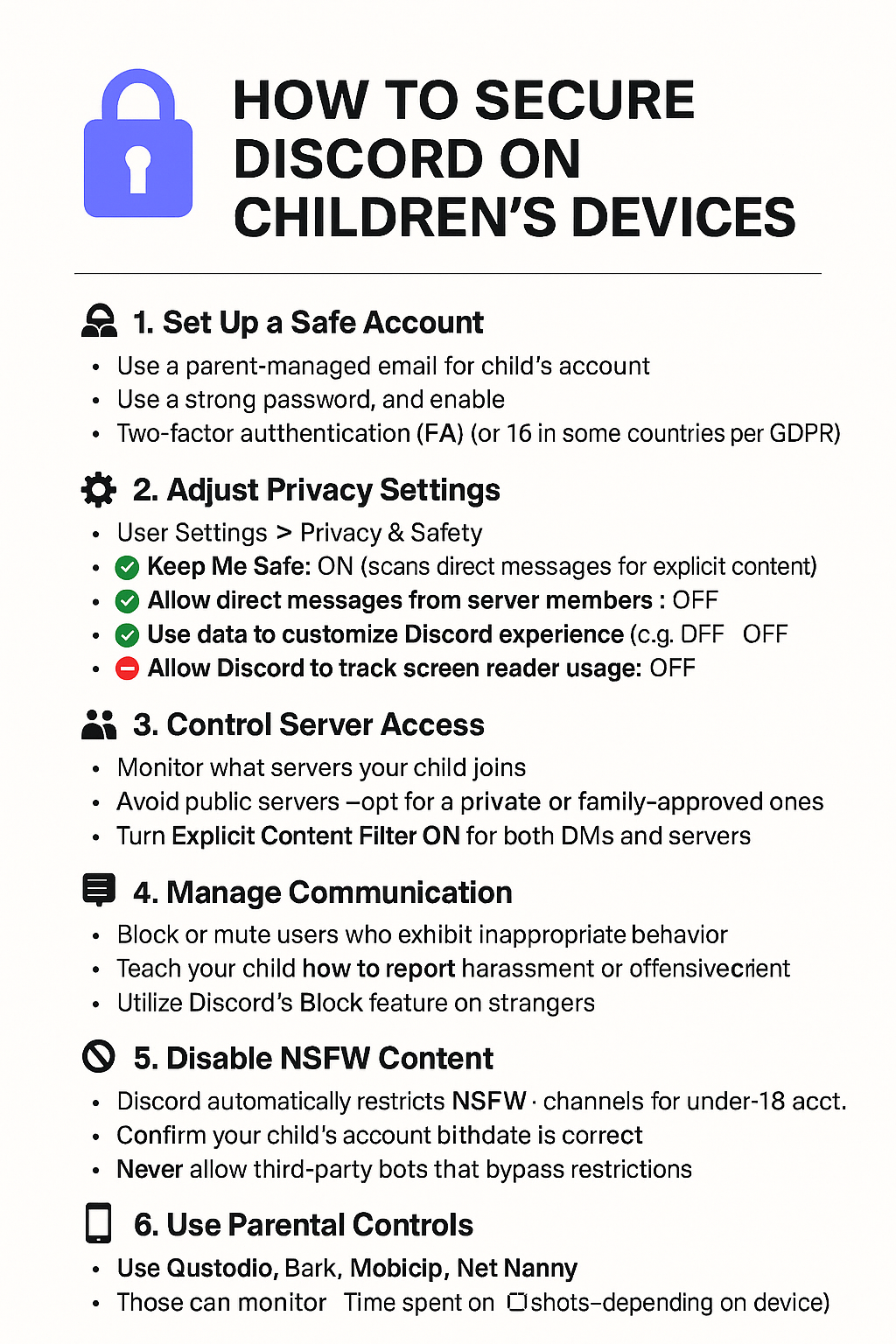 • Discord automatically restricts NSFW channels for under-18 accounts.