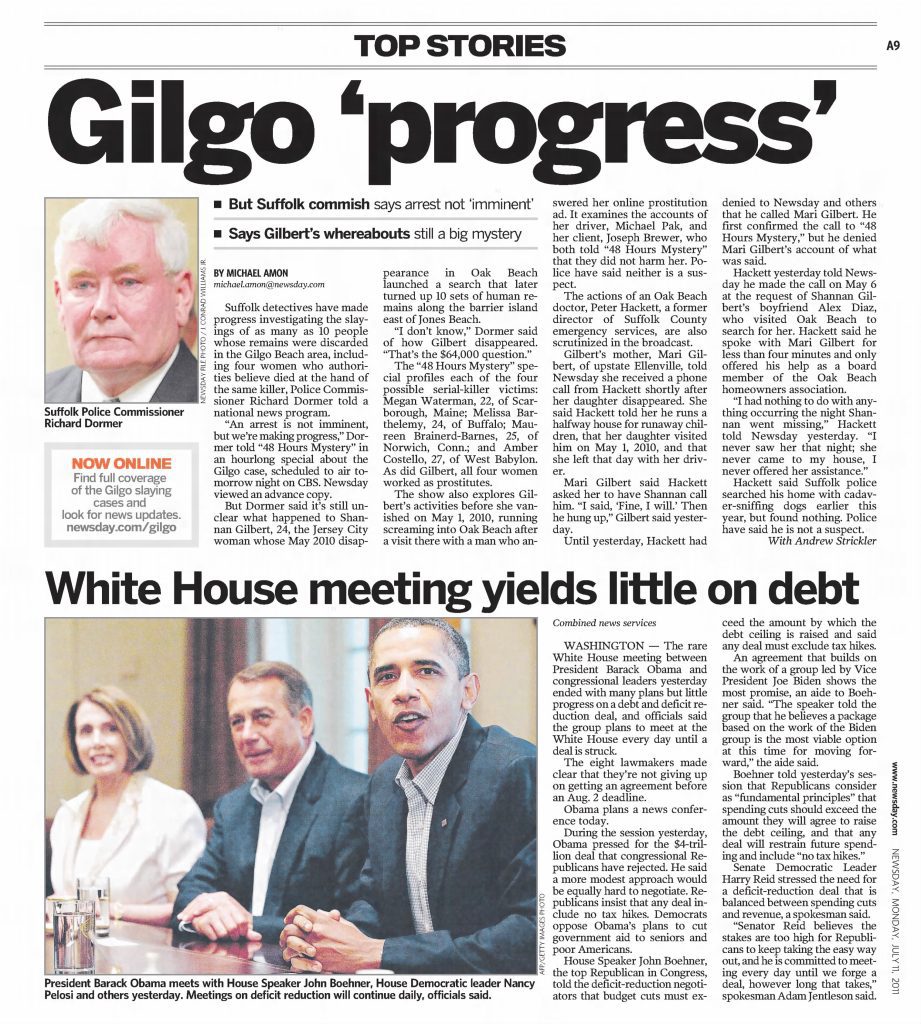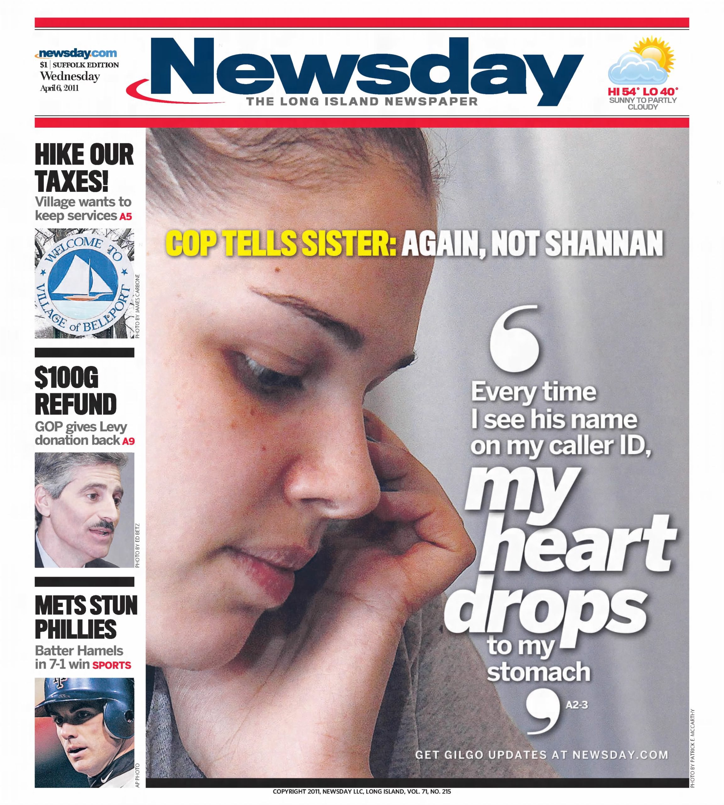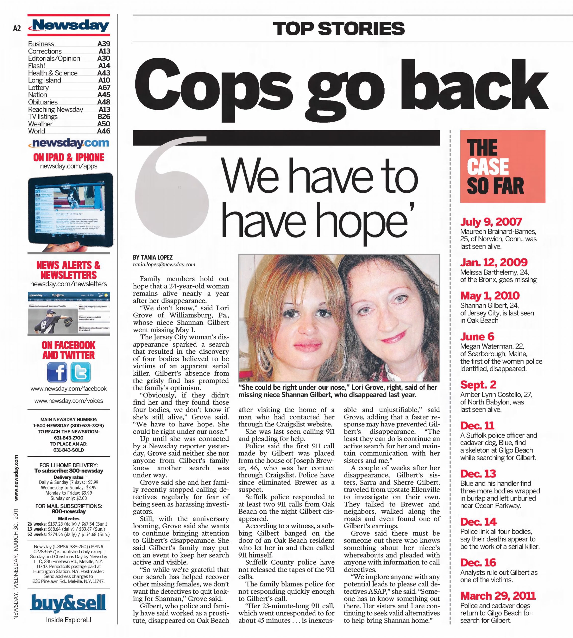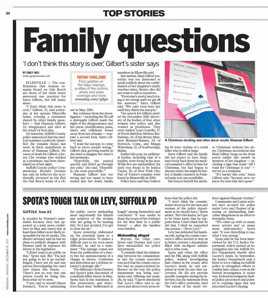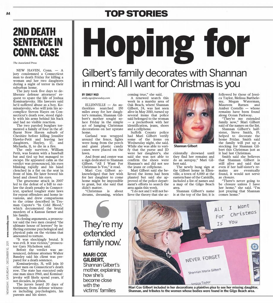 Gilbert, who had been working as an escort, was reported to have fled from a client’s home in a state of distress. Her remains were eventually found in a wooded area in Oak Beach, Long Island, in December 2011.