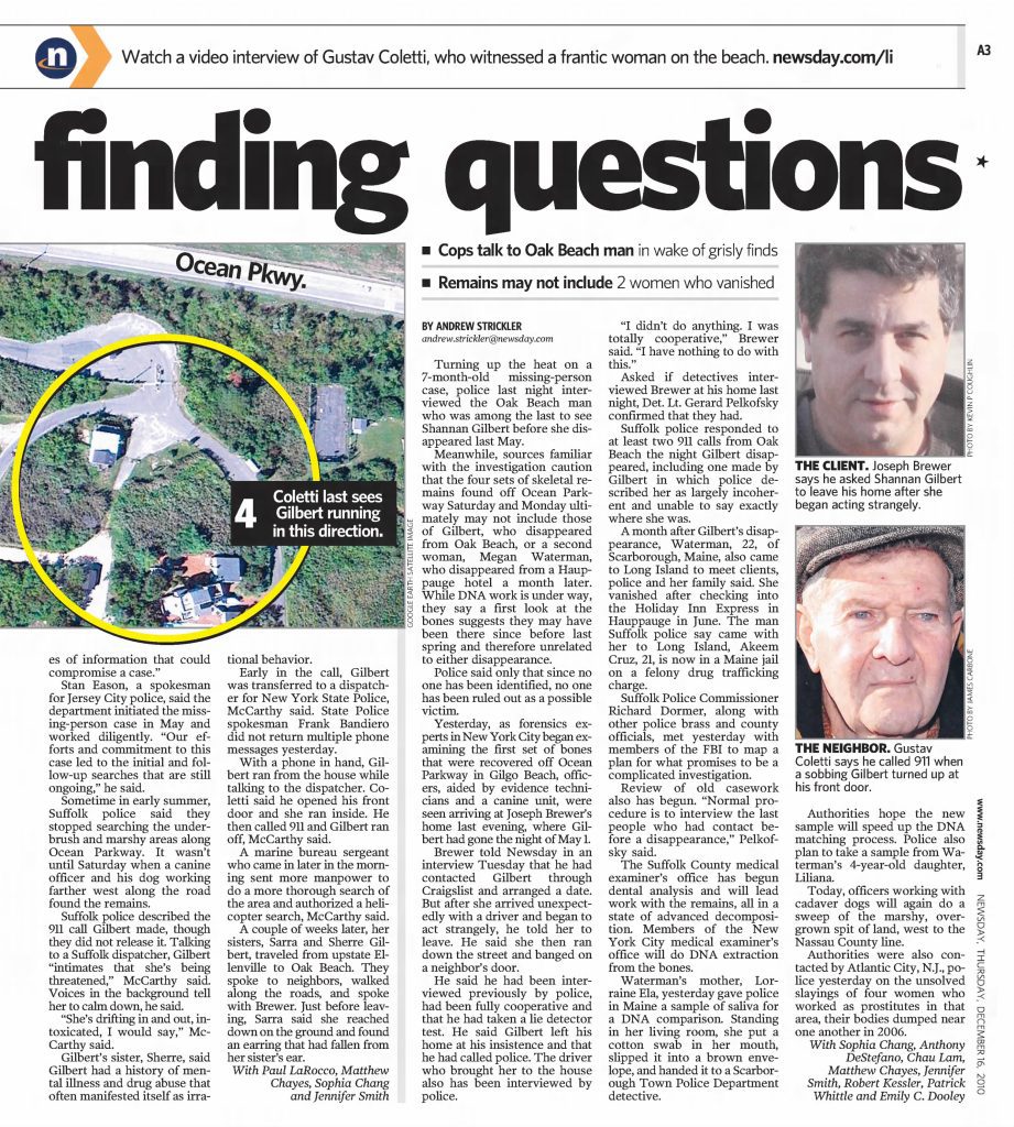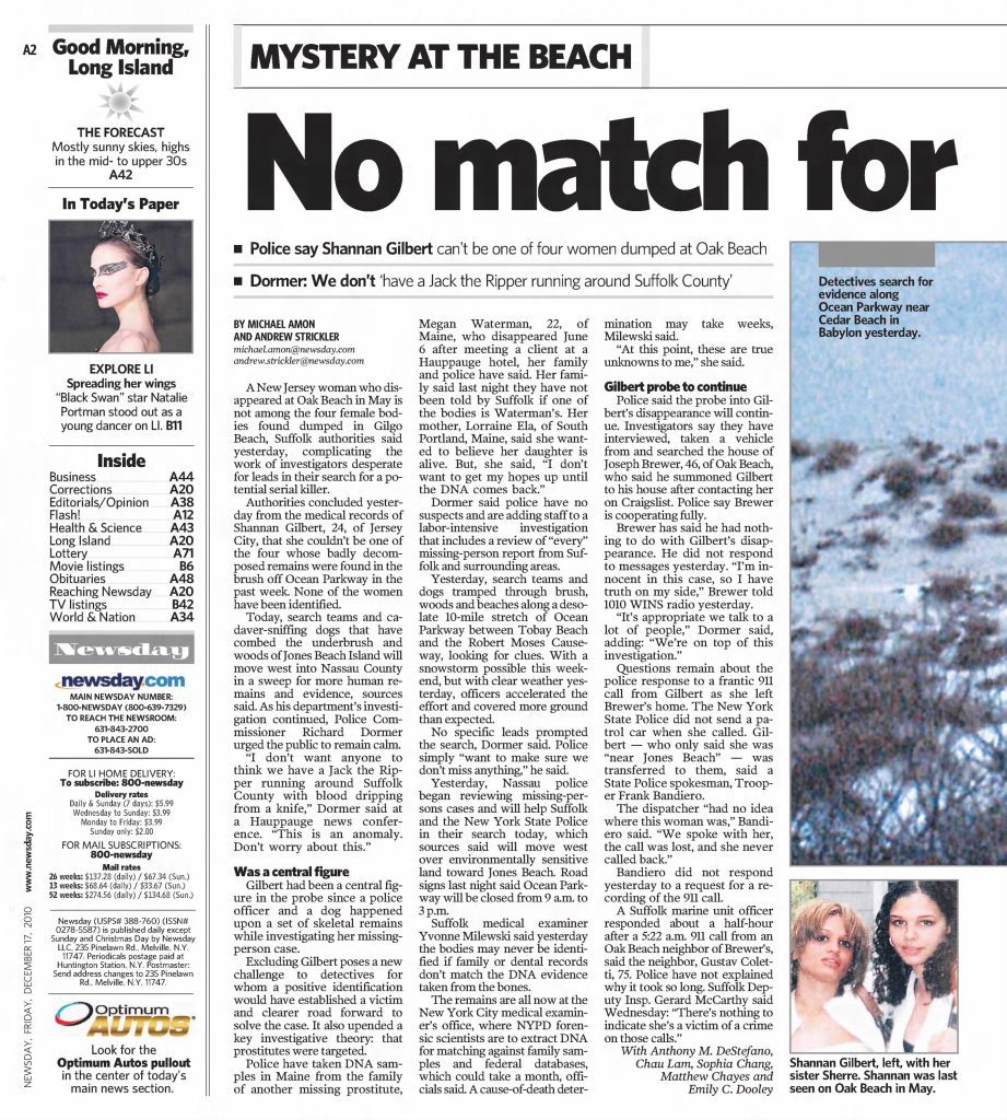 May 1, 2010: Micheal picks Shannon up from her apartment shortly after midnight. She has an appointment out-of-town, in Gilgo Beach, Long Island. The money is good though – $600 for a couple of hours. The client isn’t someone she had seen before, but everything seems normal and legit, which it was, for a time. This night though, things would go sideways and fast. Pak had brought Shannon to the private seaside town consisting of just 72 houses under the auspices of entertaining just one man: Joseph Brewer. Brewer’s life in Oak Beach, by the accounts of those who knew him, was that of an idle middle-aged bachelor with an appetite for paid sex. No one considered him to be dangerous.