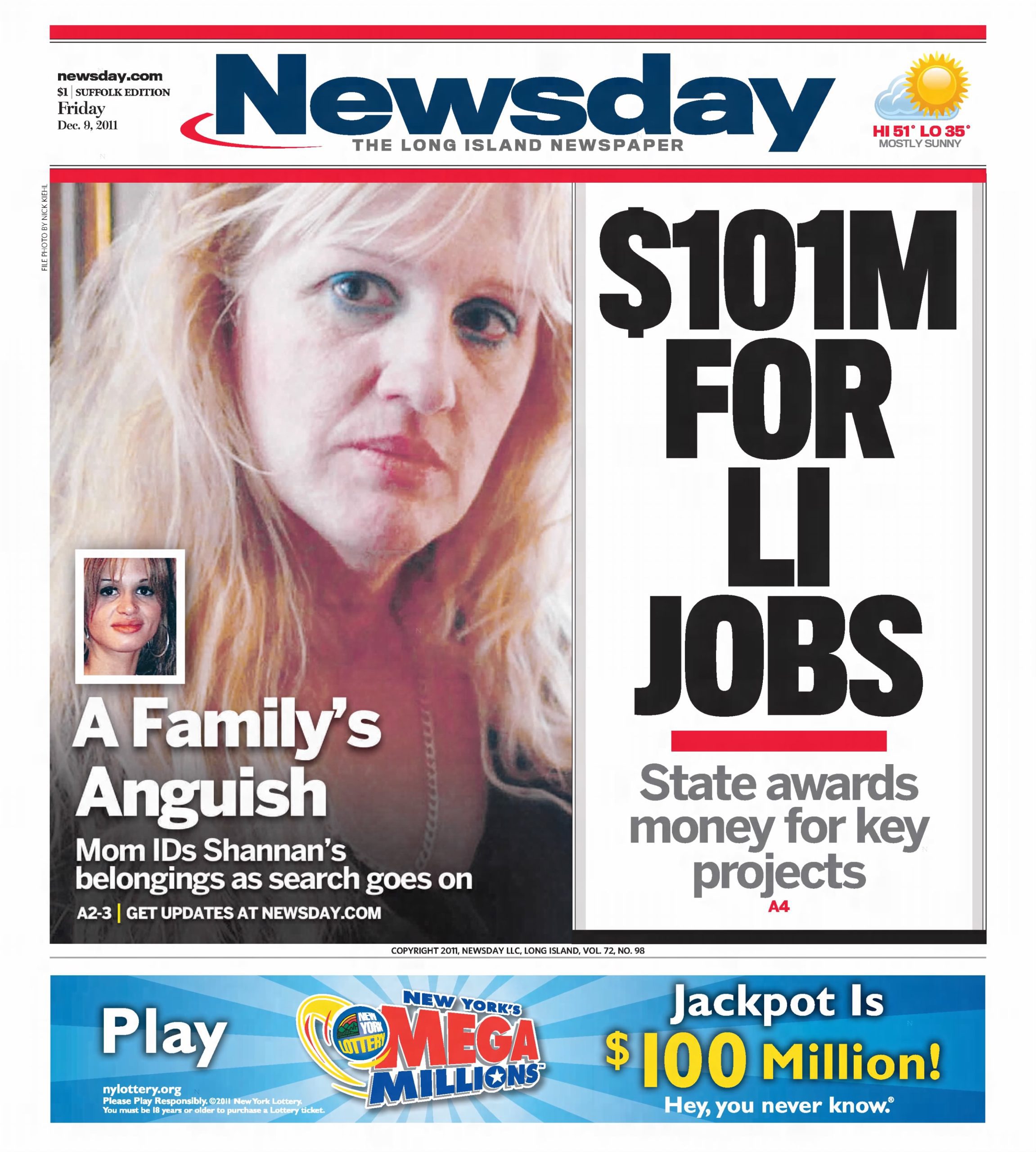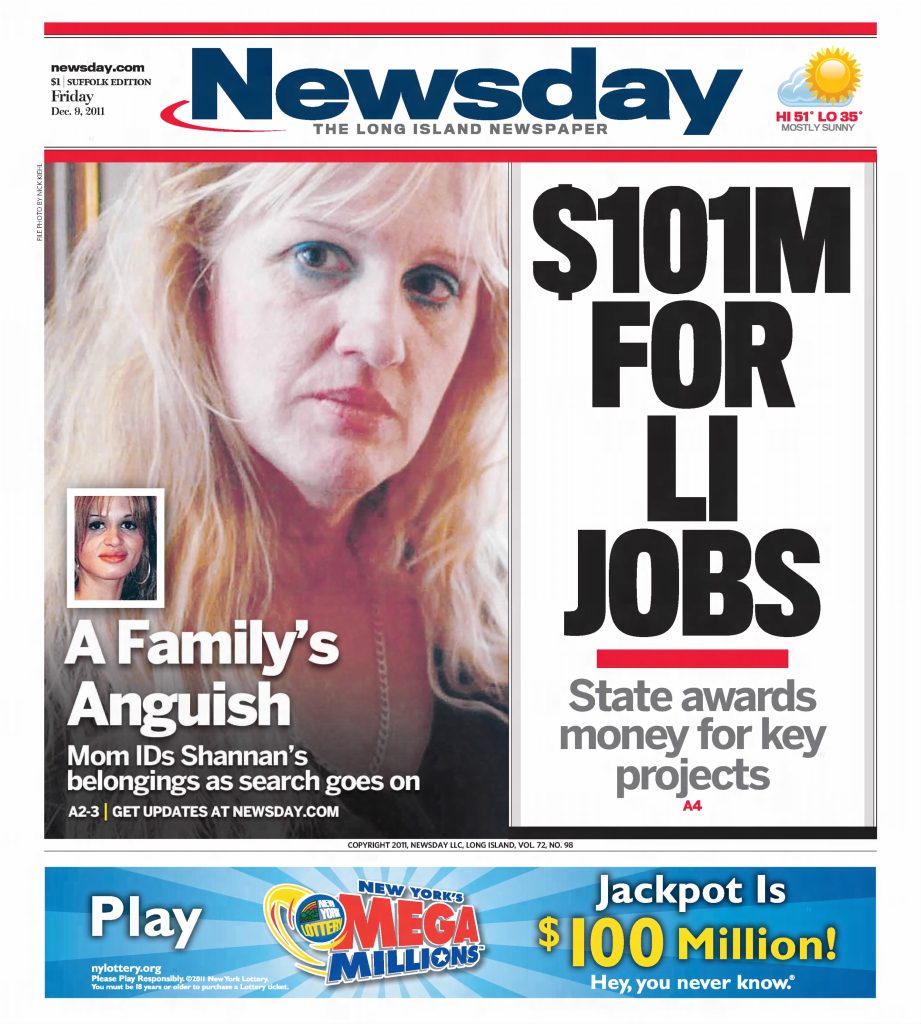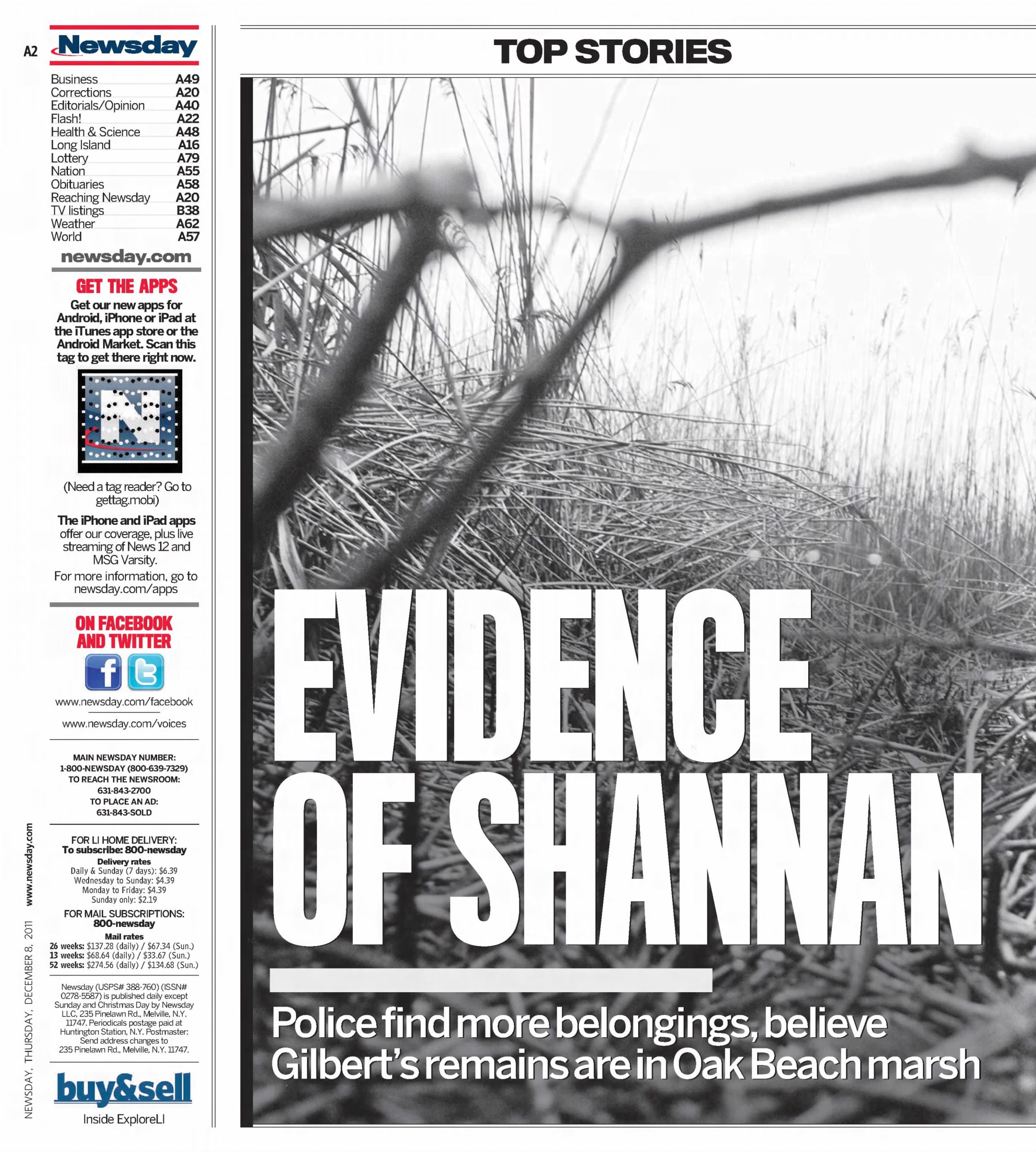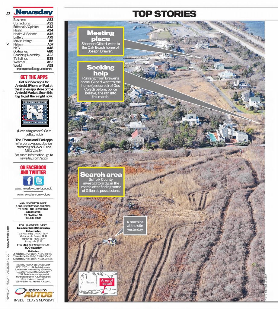 On December 13, 2011, police announced that the remains of Shannan Gilbert had been found in a marsh about half a mile from where she had disappeared. A week earlier, some of her clothing and belongings had been discovered in the same vicinity.