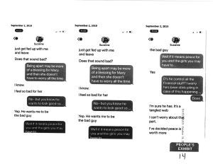 - 11:42 AM – Suzanne sent a message to Libler “Guess who’s alone again??” Libler told Agents that message meant they were free to talk