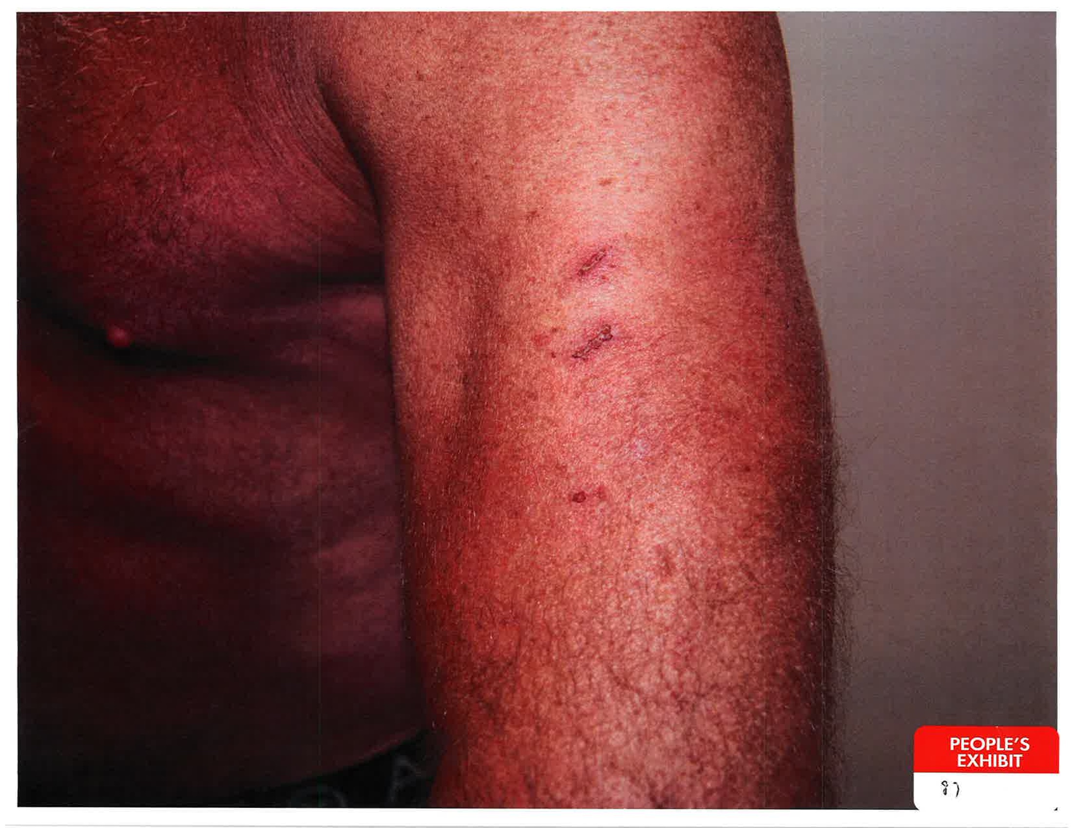 - Detectives took photos of scratches on Barry’s left arm and hands. These injuries appeared to be healing, several days old scratches.