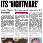 - April 4, 2011: Valerie’s head, hands, and right foot are discovered in a plastic bag along Ocean Parkway on Gilgo Beach, Long Island. Valerie Mack’s death would have occurred, more specifically, on or about and between September 1, 2000, to November 19, 2000.