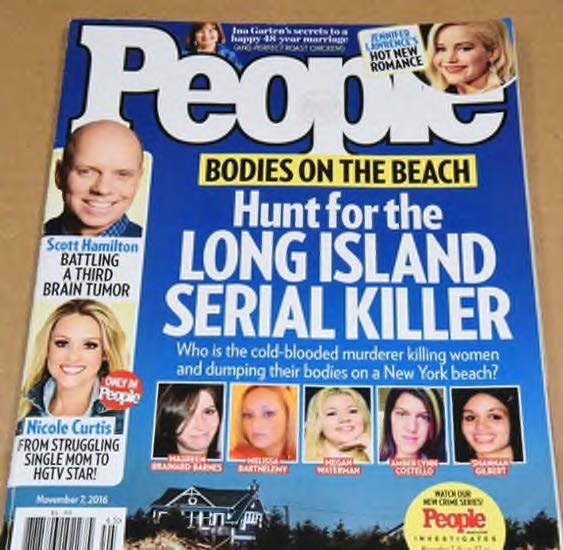 - July 15, 2023, while executing the court authorized search warrant in Manhattan, agents of the Gilgo Homicide Task Force observed a magazine in Rex A. Heuermann’s personal office, specifically a People Magazine, which had been issued on November 7, 2016.